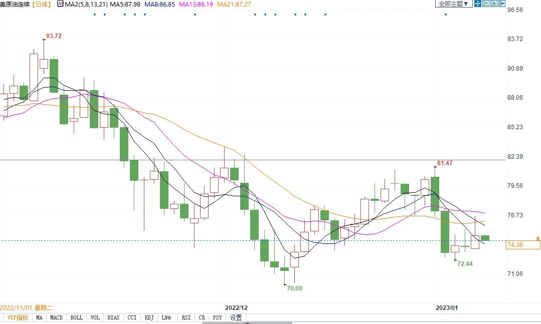 北京时间1月10日10:31,WTI原油主力合约报74.30美元/桶