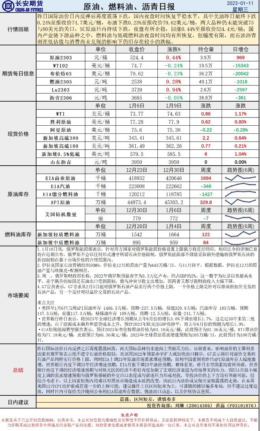 更新: 11 01月 嘉盛集团APP讯——1月11日,长安期货发布原油早评,认为原油将震荡,建议区间短差,谨慎布多。长安期货公司授权文本由“专注期货开户交易及专业行情分析资讯网站”:【一期货 www.1qh.cn】转发 标题:长安期货原油早评:建议区间短差,谨慎布多 地址:https://www.jiasmai.com/article/1548.html ← 【东海期货1月11日产业链日报】贵金属篇:美联储官员发言鹰派,金银震荡 → 期货公司观点汇总一张图:1月11日农产品(棉花、豆粕、白糖、玉米、鸡蛋、生猪等)