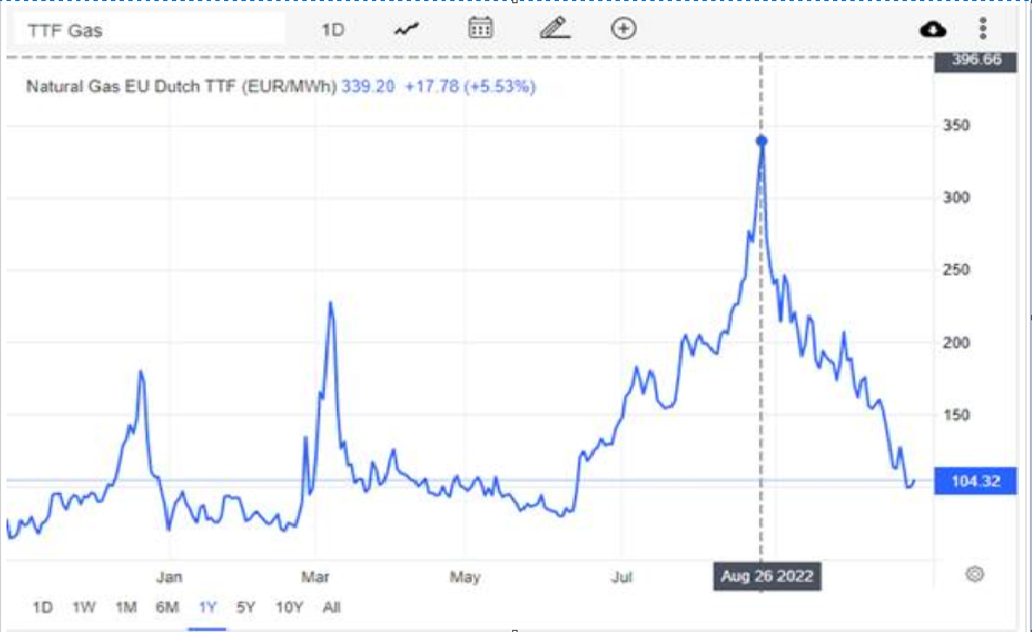 具体来看,为缓解能源危机,欧洲各国从今年夏季开始就在全球范围内疯狂采购天然气。欧盟理事会曾于6月27日批准一项规定,要求成员国天然气库存今冬前至少达到其储气能力的80%,并在下个冬季前达到90%,且成员国之间可共享天然气。8月29日,欧洲天然气基础设施(Gas Infrastructure Europe)的数据显示,欧盟的天然气储气量已经达到了80.17%。提前实现了这一储气目标。自此,欧洲天然气价格开启了回落之路。