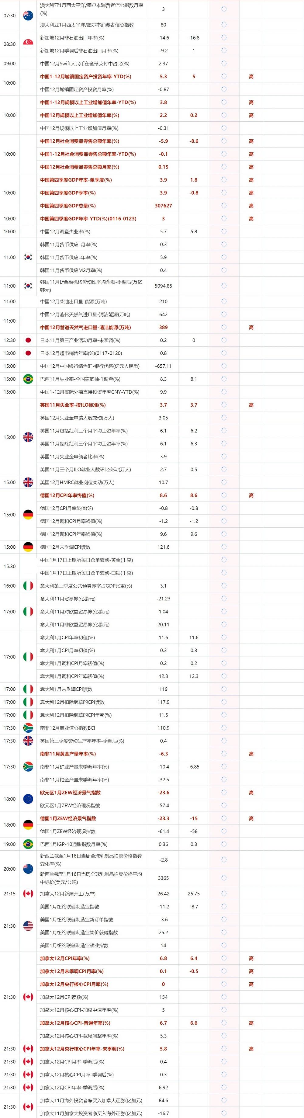 后续及时更新的财历数据请关注:【汇通网1月17日财经日历】