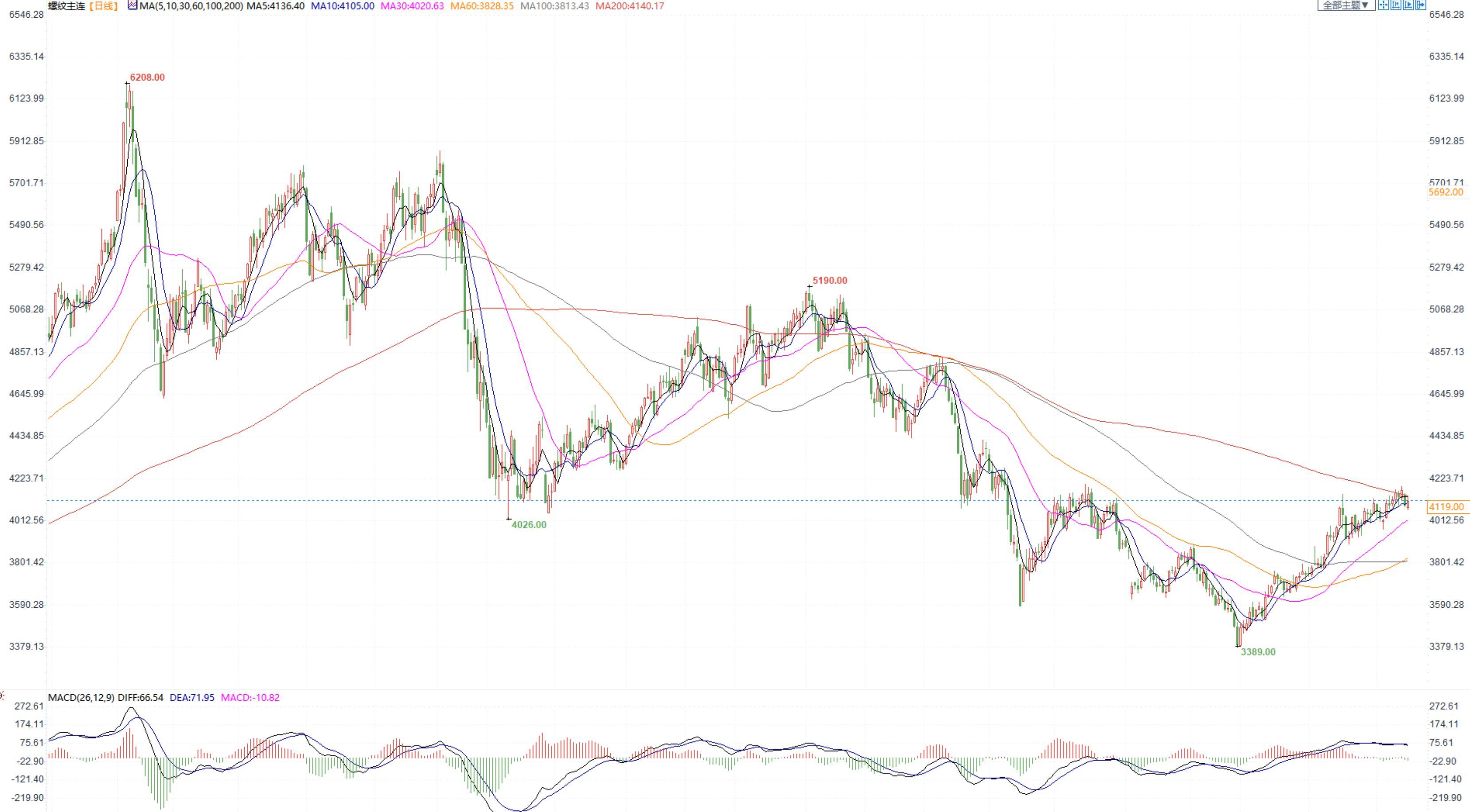 价格:螺纹钢2305合约夜盘小幅低开后,白天震荡回升,收盘价4119元/吨,小幅收涨0.17%。上海中天现货价4140元/吨,继续在高位暂稳。