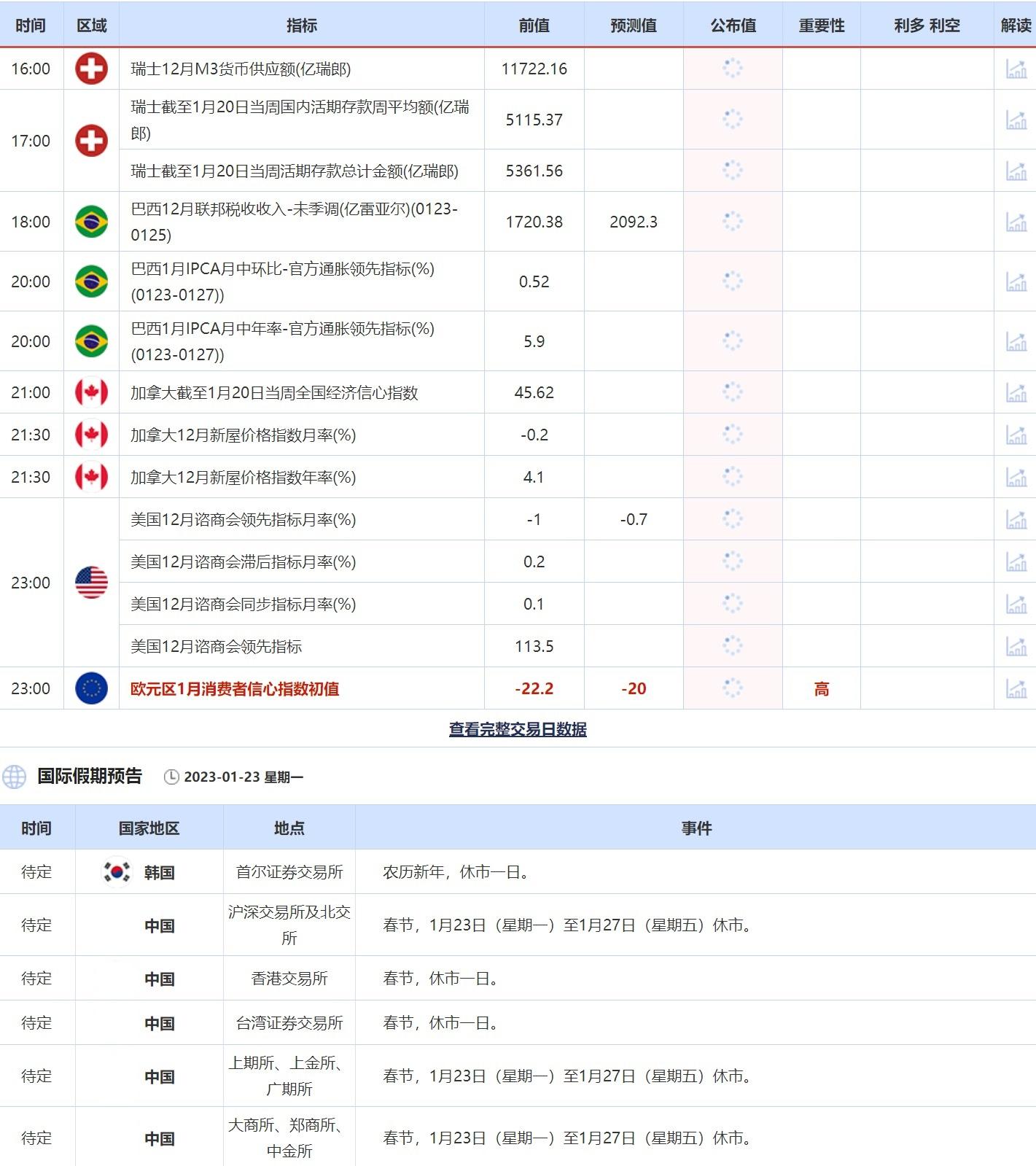 后续及时更新的财历数据请关注:【汇通网1月23日财经日历】