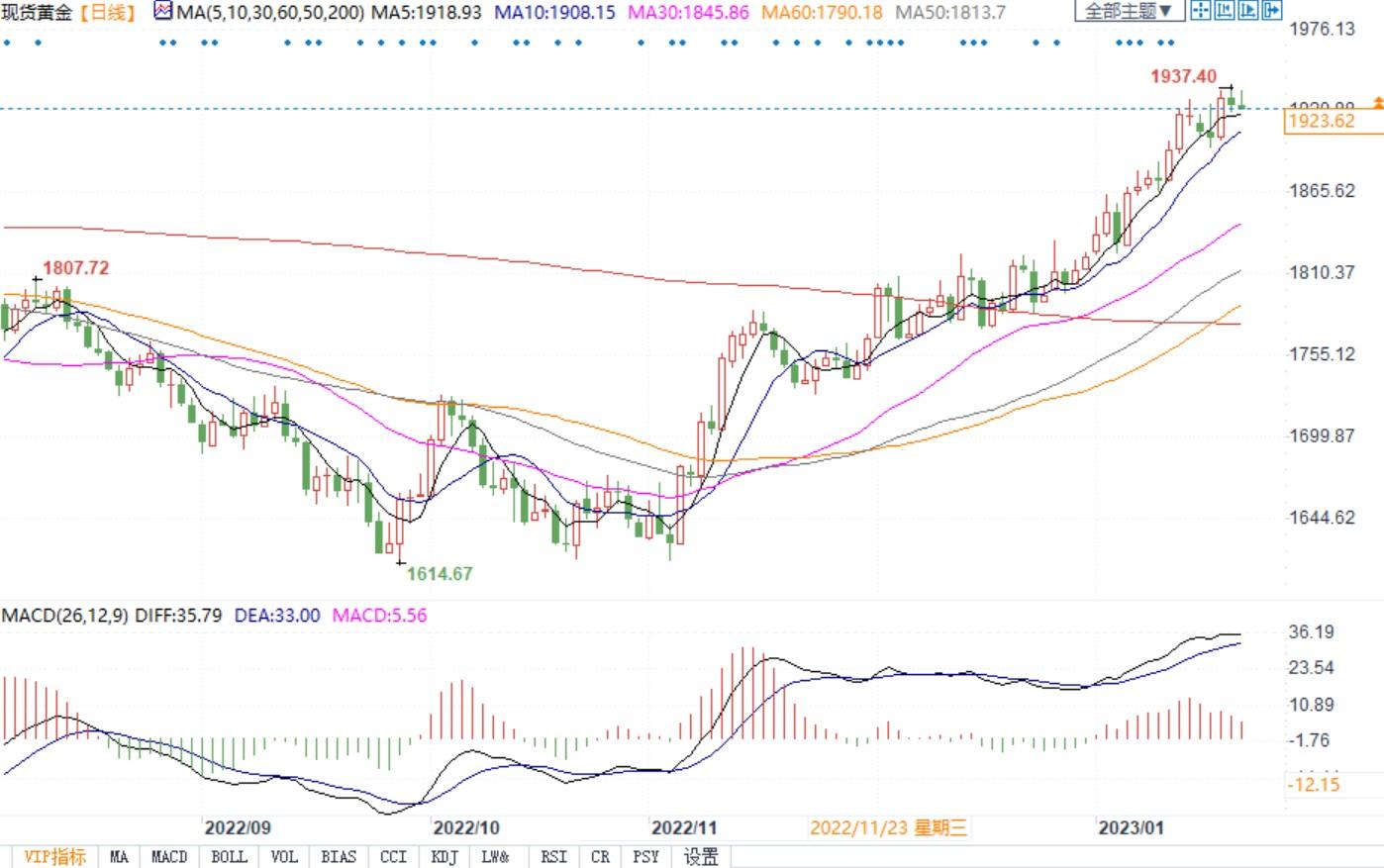 北京时间1月23日14:30,现货黄金报1923.54美元/盎司
