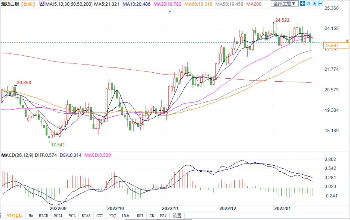 北京时间1月24日9:05,现货白银报23.40美元/盎司
