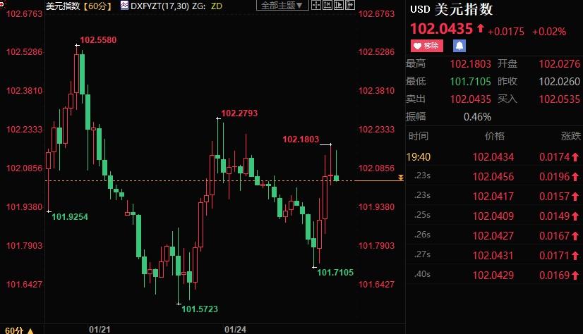 北京时间19:38,现货黄金上涨0.28%至1936.43美元/盎司;COMEX期金主力合约上涨0.47%至1937.6美元/盎司;美元指数上浮0.03%至102.059;英镑兑美元下跌0.40至1.2317。