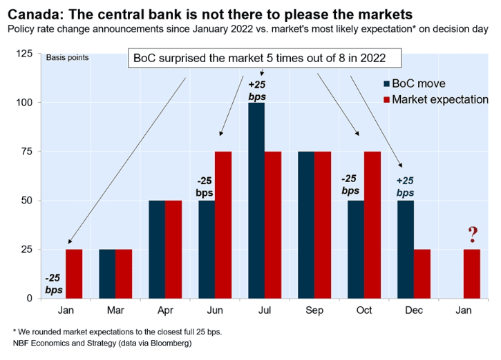 巴克莱分析师预计,加拿大将在1月25日加息25个基点,大于市场预期的20个基点,这将对加元有利。