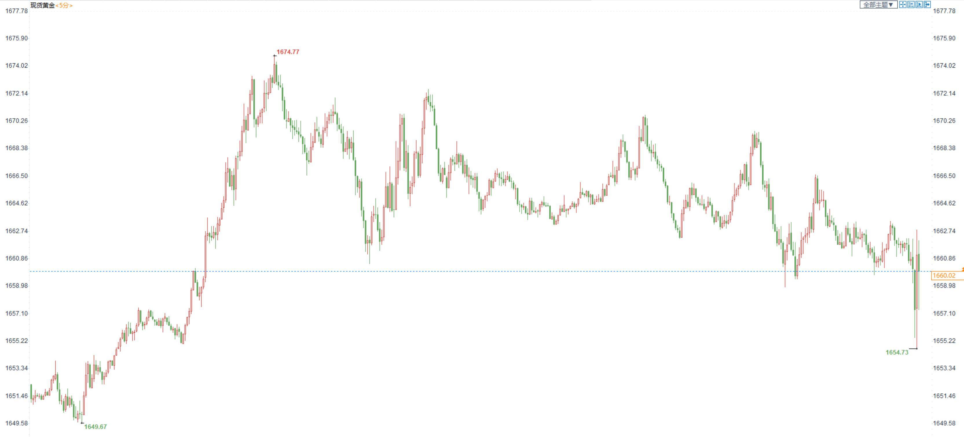 北京时间20:40,现货金价报1659.40美元/盎司。