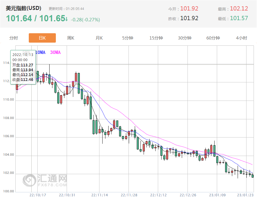 美元兑日元下跌0.42%,报129.615,1月16日曾触及127.215的近八个月低点。