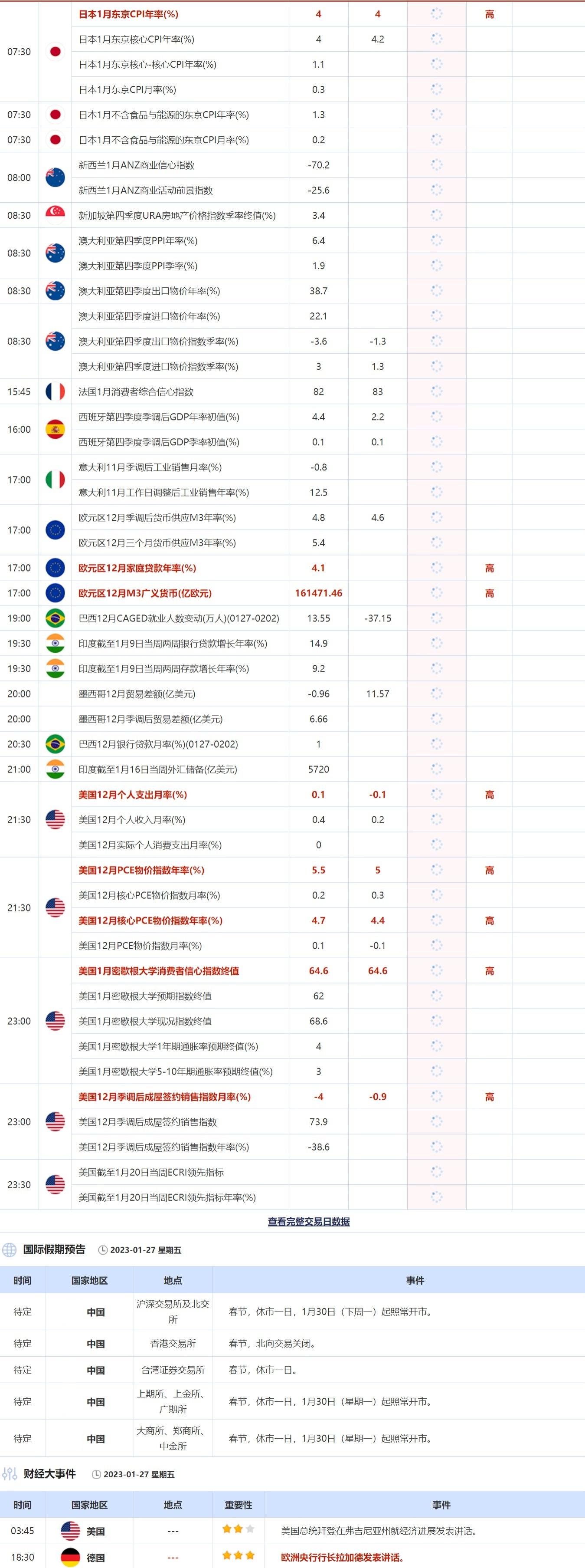 21:30 美国12月核心PCE物价指数年率(%) , 前值 4.7 , 预期值 4.4 , 公布值:待发布