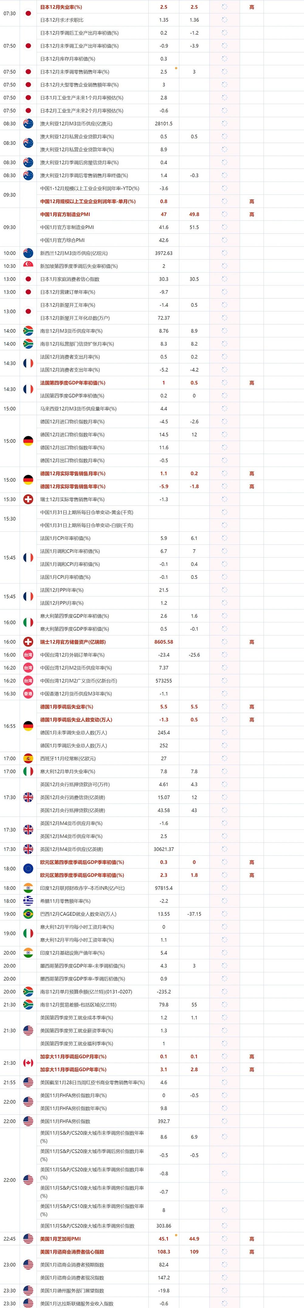 后续及时更新的财历数据请关注:【汇通网1月31日财经日历】