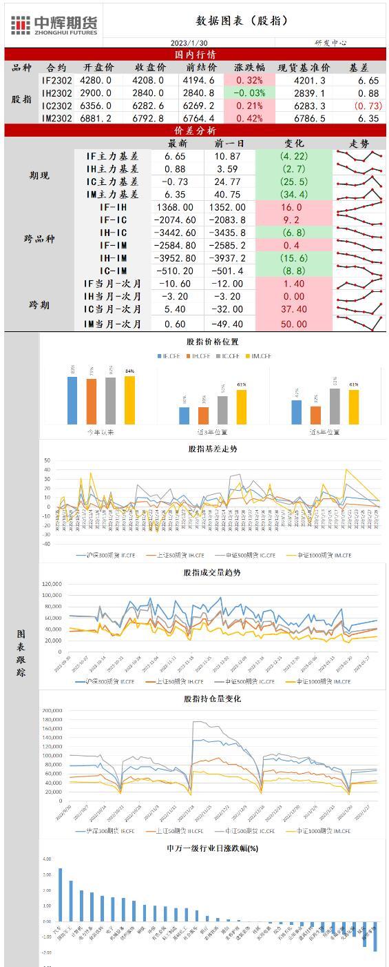 中辉期货股指日报20230130:A股兔年开门红,指数放量上涨