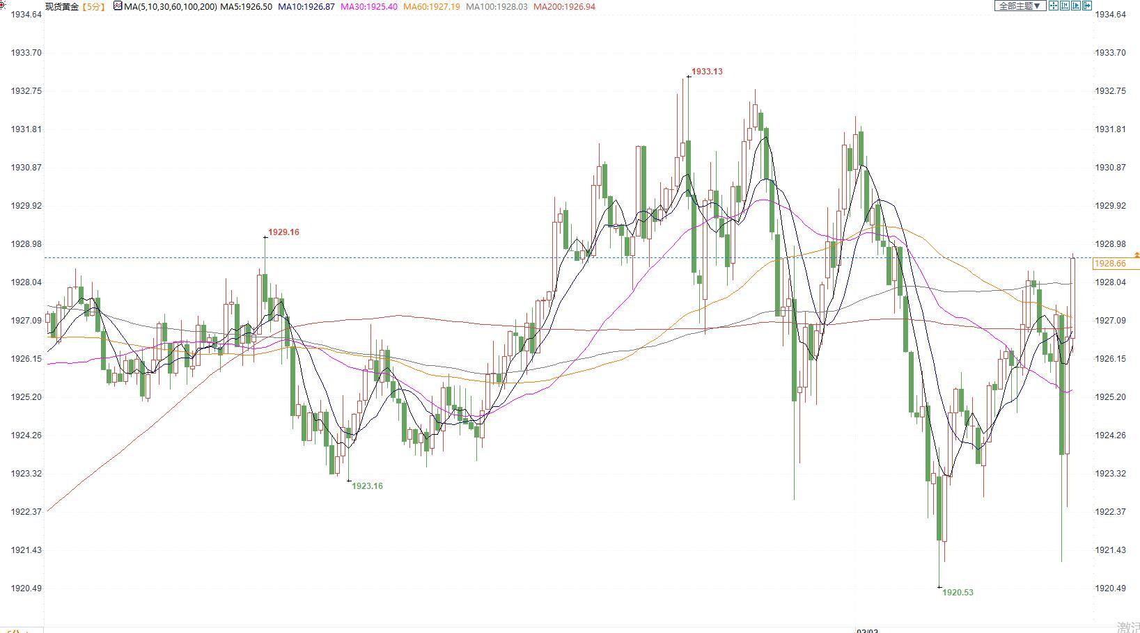 图:现货金价5分钟