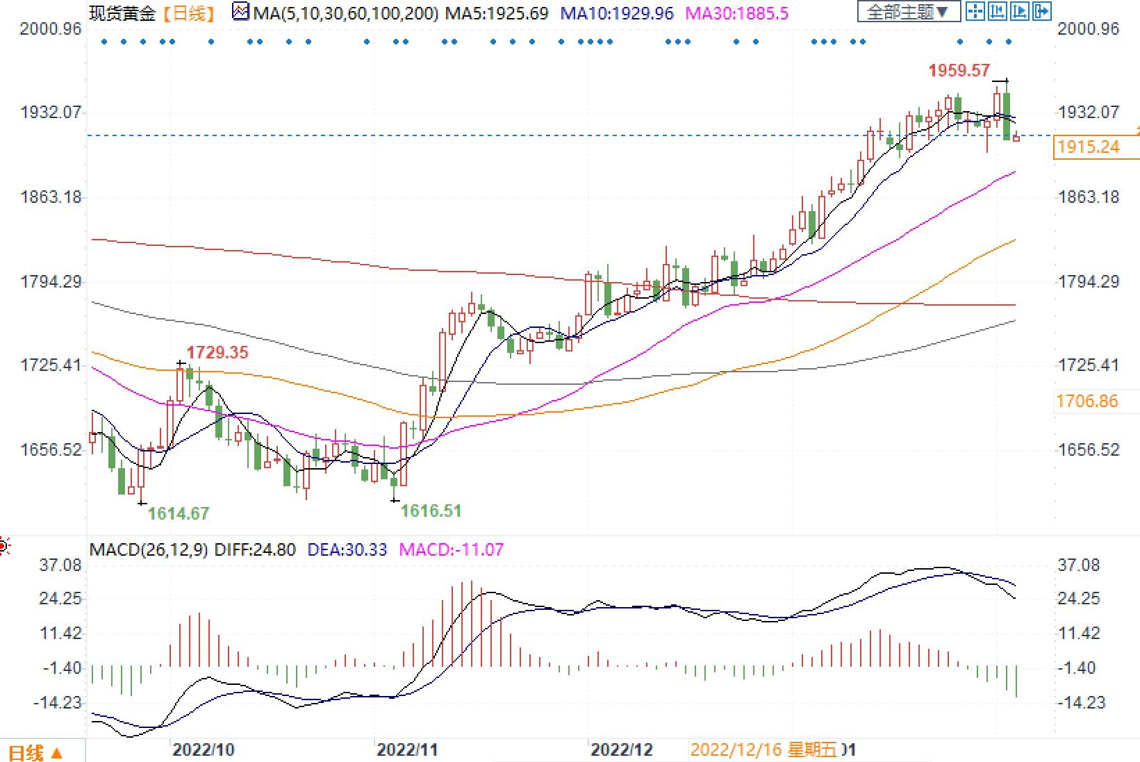 该研报还指出,2022年四季度全球央行购金再创新高,叠加地缘政治冲突延续和海外经济衰退担忧等因素推动,金价有望保持上行趋势,并突破2020年前高。黄金在2020年创下2075.47美元的高位。