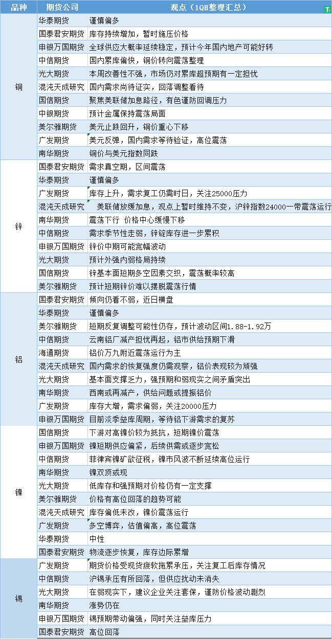 更新: 03 02月 嘉盛集团APP讯——期货公司观点汇总一张图:2月3日有色系(铜、锌、铝、镍、锡等) 标题:期货公司观点汇总一张图:2月3日有色系(铜、锌、铝、镍、锡等) 地址:https://www.jiasmai.com/article/1939.html ← 期货公司观点汇总一张图:2月3日农产品(棉花、豆粕、白糖、玉米、鸡蛋、生猪等) → 期货公司观点汇总一张图:2月3日黑色系(螺纹钢、焦煤、焦炭、铁矿石、动力煤等)