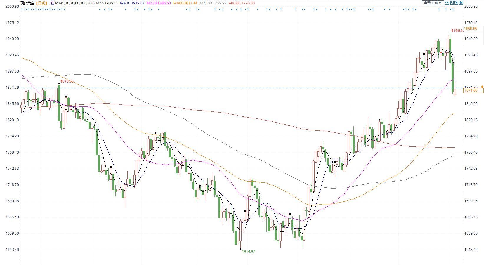 如果金价多头发力,并且突破关键的1900美元关口。那么就有望升至1913美元,大约在21日均线附近。只要金价低于21日均线,那么金价短期还将是处于空头态势中。