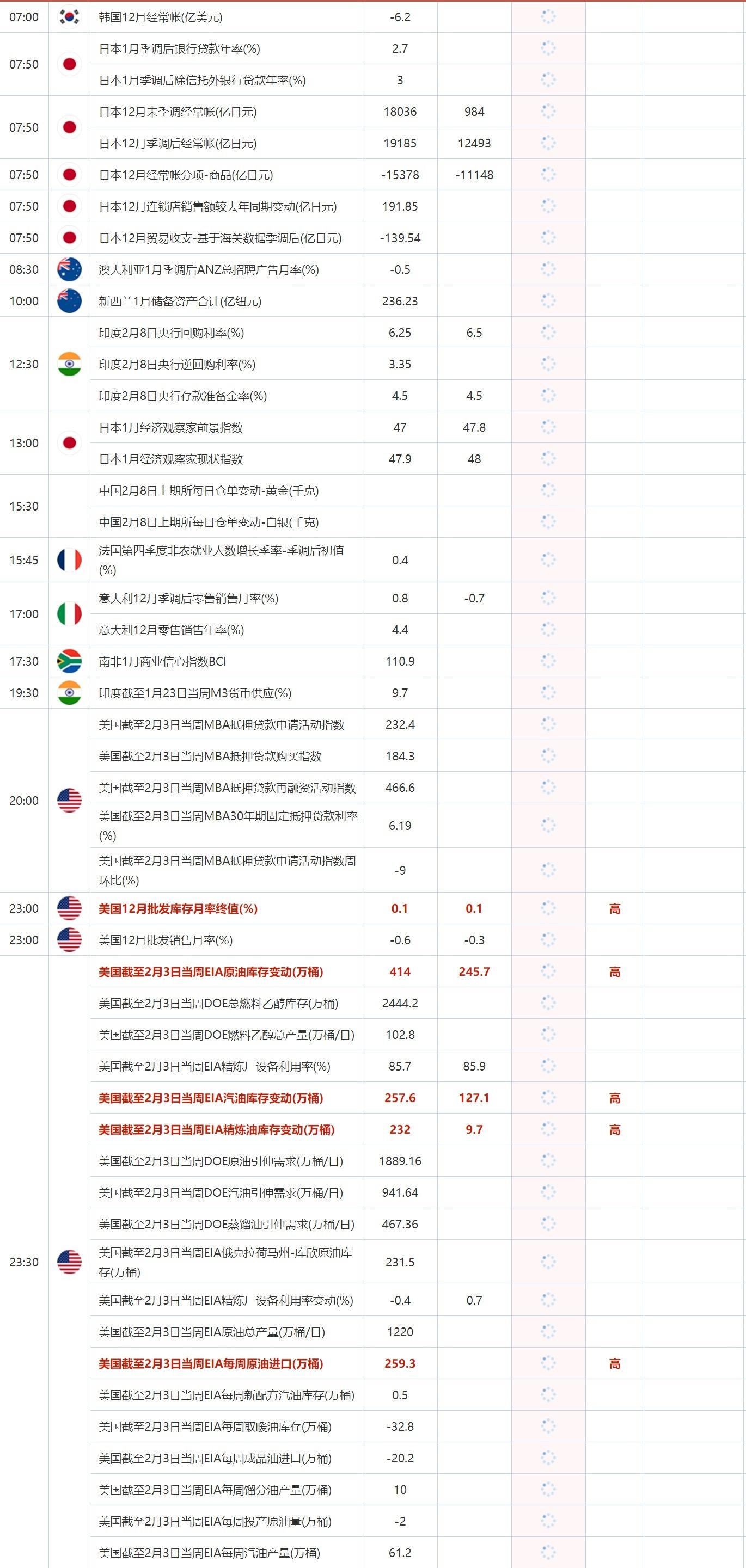 后续及时更新的财历数据请关注:【汇通网2月8日财经日历】