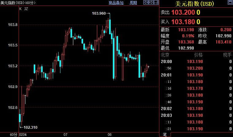 北京时间20:03,现货黄金上涨0.48%至1880.74美元/盎司;COMEX期金主力合约上涨0.46%至1893.4美元/盎司;美元指数下跌0.15%至103.192。
