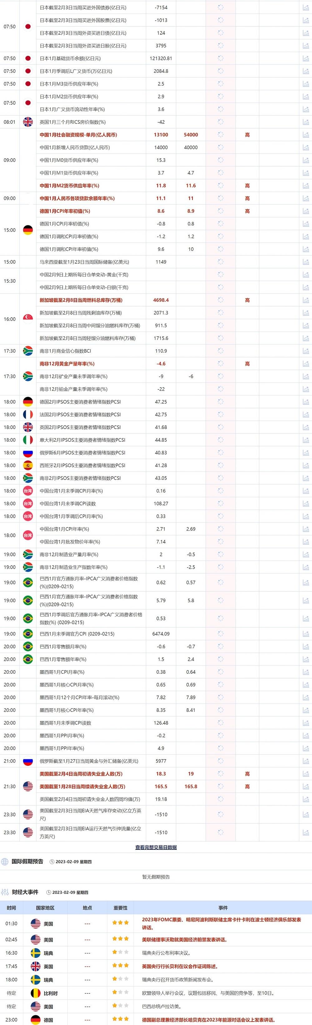 后续及时更新的财历数据请关注:【汇通网2月9日财经日历】