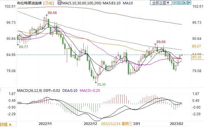 北京时间2月9日14:40,布伦特原油连续报85.20美元/桶