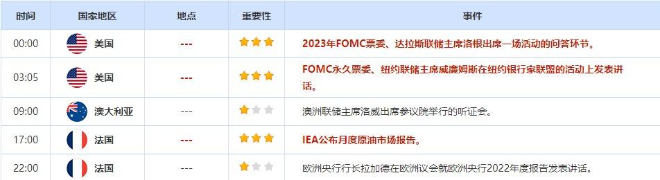 2月15日,2023年FOMC票委、达拉斯联储主席洛根出席一场活动的问答环节;FOMC永久票委、纽约联储主席威廉姆斯在纽约银行家联盟的活动上发表讲话。投资者需关注这两位美联储官员对于经济和美联储政策的最新观点。