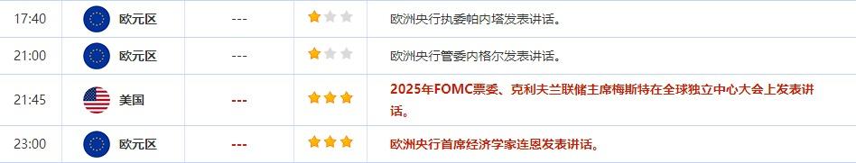 2月16日当天,2025年FOMC票委、克利夫兰联储主席梅斯特在全球独立中心大会上发表讲话。此外,欧洲央行首席经济学家连恩发表讲话。投资者需关注这两位官员对于经济和央行货币政策的最新评论和观点。
