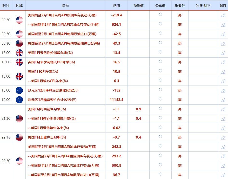 ③2月15日(周三)关键字:美国截至2月10日当周API和EIA原油库存变动,英国1月CPI
