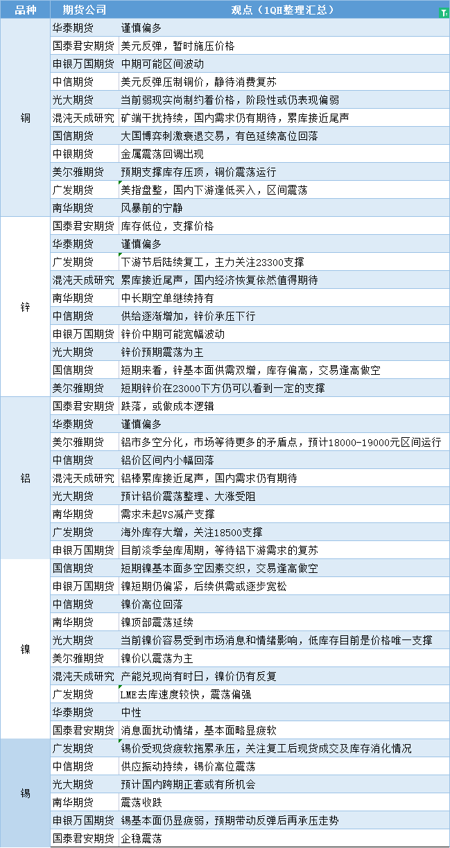 更新: 13 02月 嘉盛集团APP讯——期货公司观点汇总一张图:2月13日有色系(铜、锌、铝、镍、锡等) 标题:期货公司观点汇总一张图:2月13日有色系(铜、锌、铝、镍、锡等) 地址:https://www.jiasmai.com/article/2094.html ← 期货公司观点汇总一张图:2月13日农产品(棉花、豆粕、白糖、玉米、鸡蛋、生猪等) → 期货公司观点汇总一张图:2月13日黑色系(螺纹钢、焦煤、焦炭、铁矿石、动力煤等)