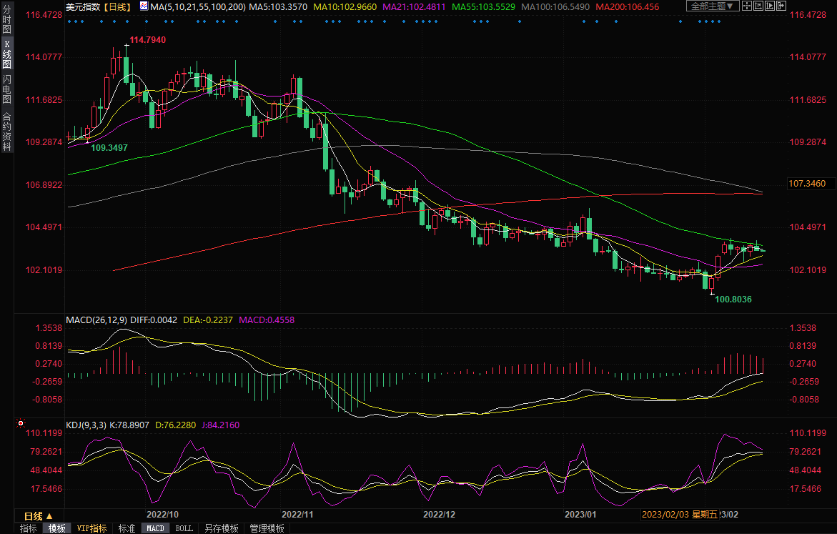 周一美元指数冲高回落,早些时候因为市场预期美国1月份通胀增速回升,美元一度逼近逾一个月高位,最高触及103.84,但随后这种预期有所降温,美元指数由涨转跌,周一收报103.27,跌幅约0.29%。