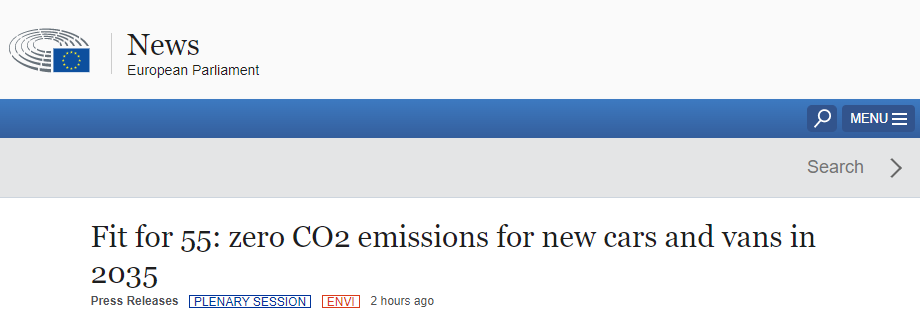 当地时间周二(2月14日)欧洲议会在斯特拉斯堡以340票赞成,279票反对、21票弃权的投票结果,通过了欧委会和欧洲理事会达成的《2035年欧洲新售燃油轿车和小货车零排放协议》。