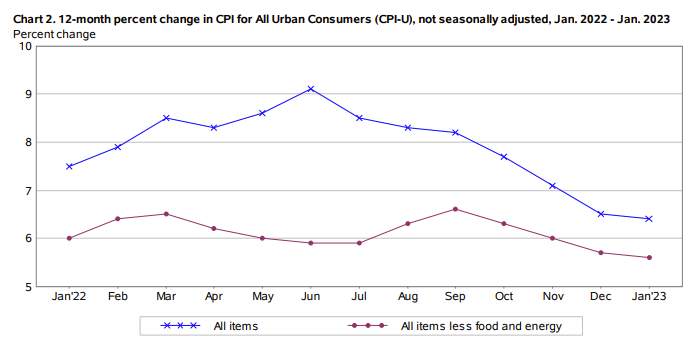 周二(2月14日)美股盘前,美国劳工统计局最新发布的数据显示,美国1月消费者价格指数(CPI)同比上涨6.4%,核心CPI同比上涨5.6%,均高于市场预期。