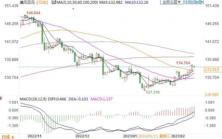 北京时间2月16日14:33 美元兑日元报 133.913/923