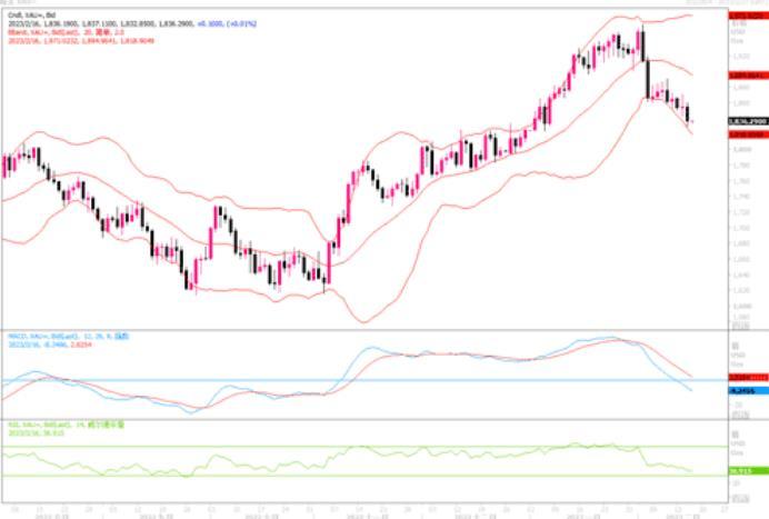 嘉盛集团APP讯——周三(2月15日)美国公布“恐怖数据”-1月份零售销售“爆表”——大超预期,现货黄金继续承压下行,全日下跌1.01%,盘中最低抵达1829.80水平,当日高低再度跌去近30美元。