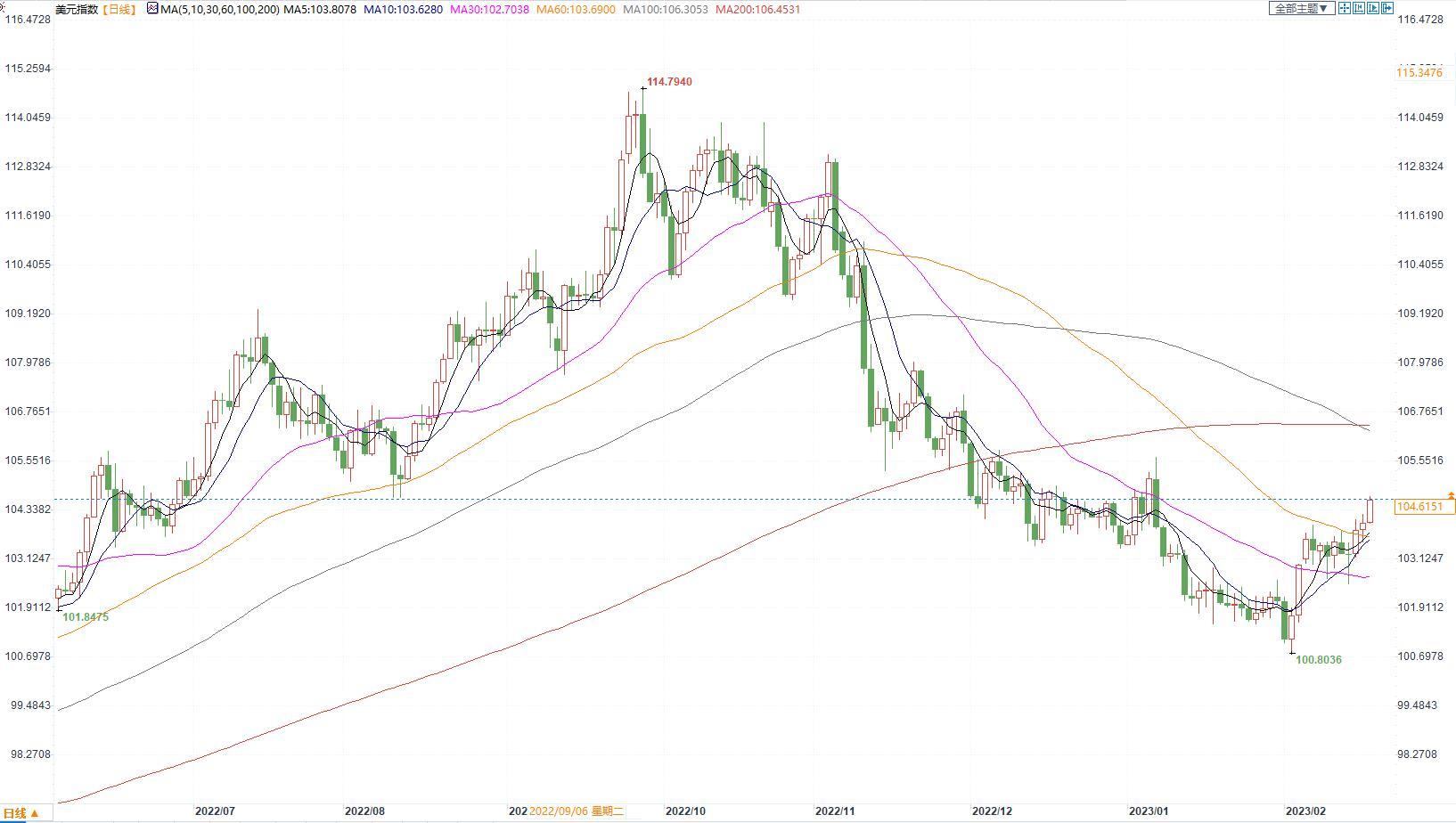 圣路易斯联储主席布拉德和克利夫兰联储主席梅斯特表达了他们的鹰派倾向,提振美元。其中,布拉德表示,“通过保持低通胀预期,即使经济持续增长和劳动力市场强劲,持续的政策加息也有助于在2023年锁定反通胀趋势。”