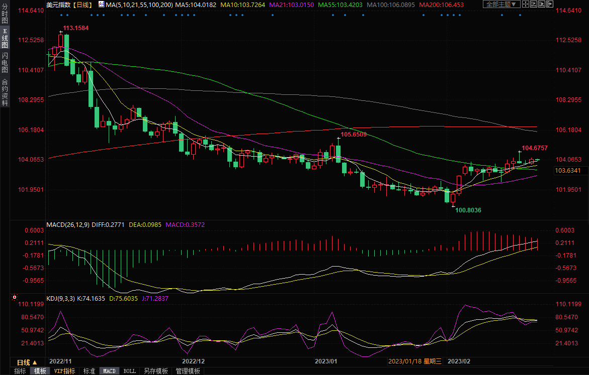 周三(2月22日)亚洲时段,美元指数窄幅震荡,目前交投于104.10附近,守住了隔夜涨幅,接近上周创下的近六周高点。受助于强劲的美国经济数据,美元指数周二上涨0.3%,收报104.20附近。