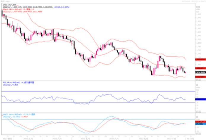 目前全球各大主要经济体多数处于加息通道中,这是现时影响黄金走势因素的主要基本面,因此黄金大方向的把握上依然以弱势为主,但目前偶尔有加息放缓的言论出现,相信相关言论的出现将会对黄金构成提振,一定程度上抑制黄金的下行,但从走势而言,黄金仍然维持在震荡下探的走势中,基本面和技术面均未有显示扭转目前下探走势的迹象出现,黄金下方支撑看1560,上方阻力1680一带。