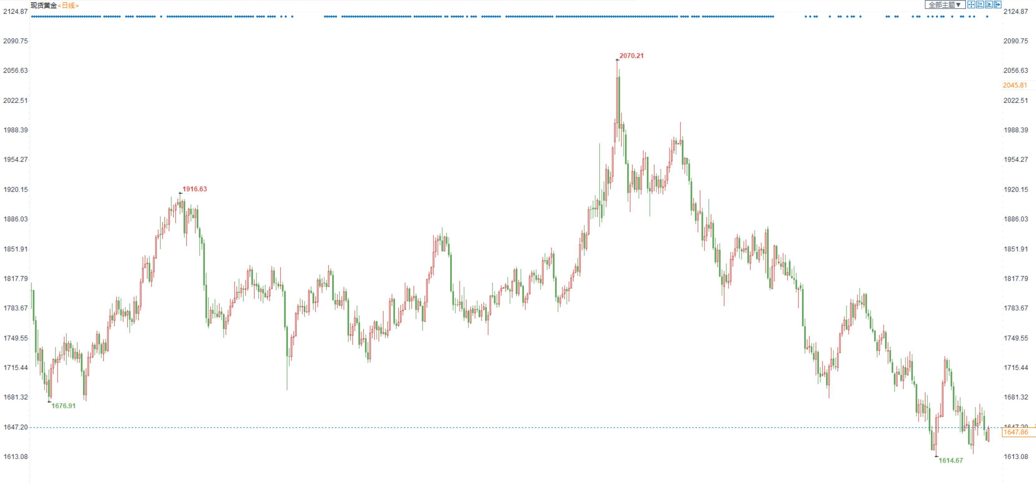 在美国国债收益率近期反弹的情况下,金价难以站稳脚跟,如果未能守住年度低点(1615 美元),金价将会有进一步下跌的空间。