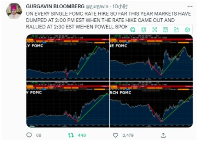 值得一提的是,从今年多次的美联储决议来看,美股往往会倾向于在利率决议发布伊始下跌,但在2点半鲍威尔新闻发布会召开后大幅走高。对于短线投资者而言,今晚或许可以着重留意这一现象。