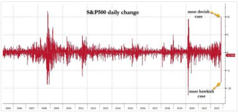 1.加息50个基点,并举行温和的新闻发布会:“鉴于通胀水平和劳动力市场紧张,很难想象会出现这种结果。如果出现这种结果,立即的反应可能会为股票带来两位数的单日回报率。” 标准普尔500指数将上涨10%至12%。
