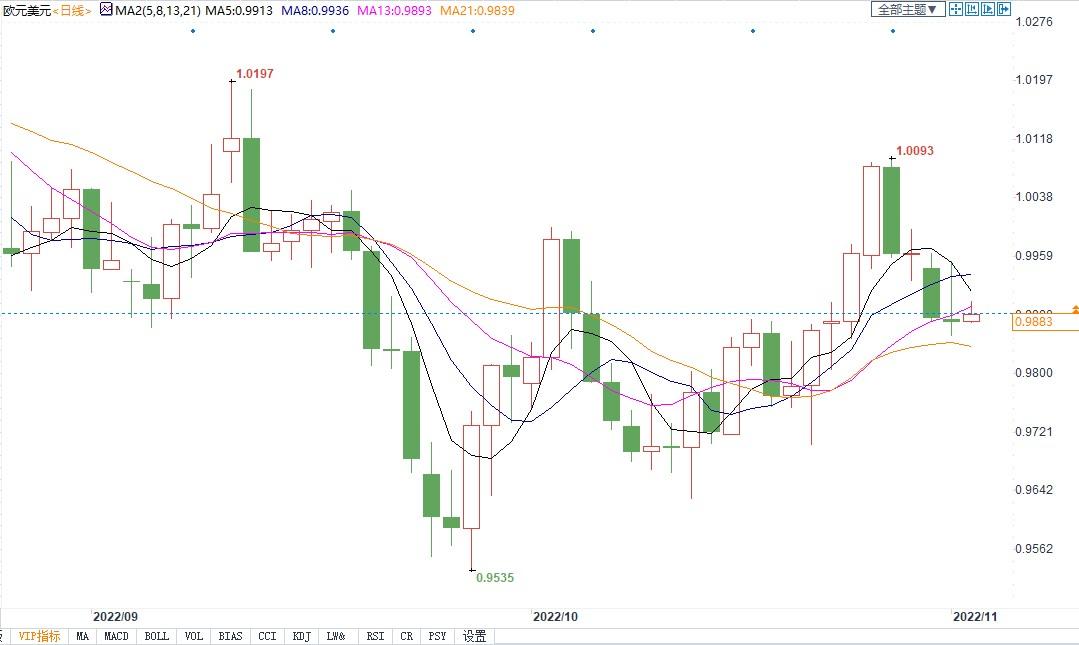 北京时间11月2日14:19,欧元兑美元报0.9884/85。
