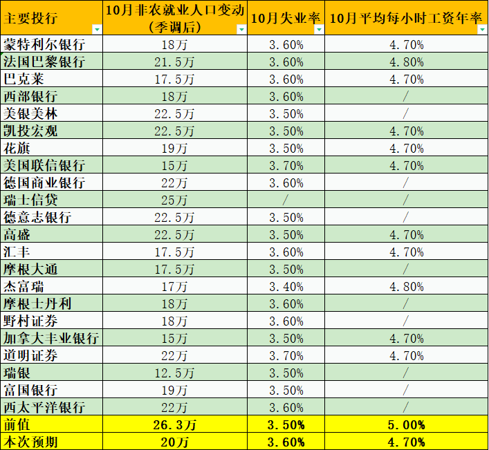 更新: 03 11月 北京时间周五(11月4日)20:30,美国将公布10月季调后非农就业人口变动和失业率。周四(11月3日),包括摩根士丹利在内的22家大型投行发表了对此次数据的前瞻,具体如下。22家大型投行预测显示,主要投行认为10月非农增速进一步下滑,但投行之间的增幅预期差距较大。具体而言,美国10月季调后非农就业人口增幅料介于12.5万-22.5万(前值26.3万),失业率料介于3.4%-3.6%(前值3.5%),平均时薪年率增幅料介于4.7%-4.8%(前值5%)。和前值相比,投行认为10月非农增速,相比之下失业率和平均时薪年率和前值。若数据显示10月非农增幅真如投行预测那样下滑,可能令美元指数承压,黄金有望获得支撑。 标题:22家投行前瞻10月非农:增幅恐进一步放缓,美元指数恐承压 地址:https://www.jiasmai.com/article/306.html ← 国际金价短线支撑位在1625美元 → 美原油短线交易策略:库存大减盖过鲍威尔鹰派讲话影响,多头仍掌控局势