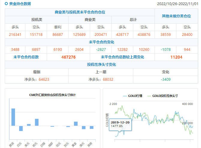 贵金属方面,截至11月1日当周,投机者将COMEX黄金净空头头寸增加5743手至38878手合约,创最近五周新高。COMEX白银净空头头寸减少2593手至3468手。NYMEX铂金净多头头寸增至13340手合约创最近逾七个月新高,所持NYMEX钯金净空头头寸增至1262手合约创最近约三个月新高。