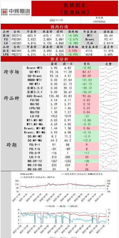 供需:EIA最新报告数据显示,截止11月4日当周美国商业原油库存增加392.5万桶,预期增加136万桶,涨幅超出预期。地缘政治:俄罗斯下令撤出赫尔松部分地区,俄乌地缘冲突仍在继续。