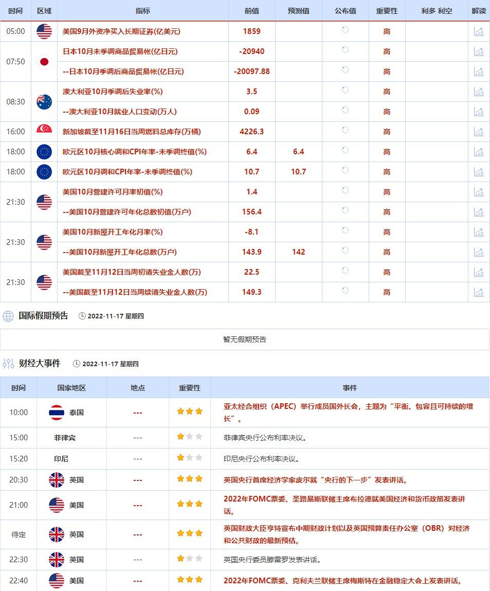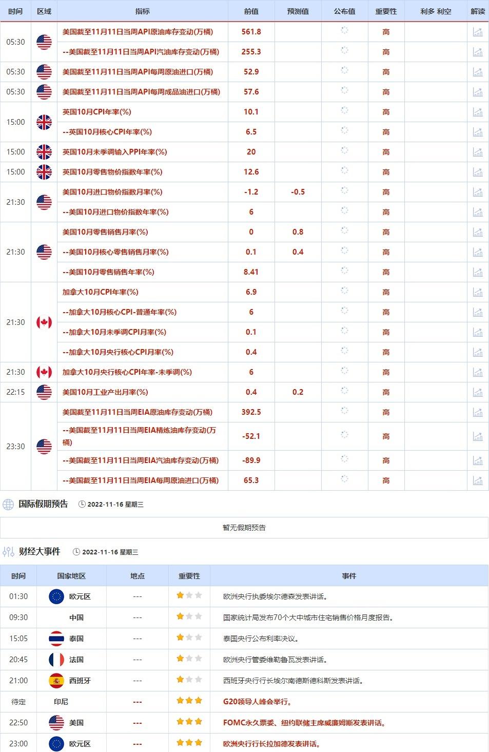 ③11月16日(周三)关键字:英国10月CPI,美国截至11月11日当周API和EIA原油库存变动