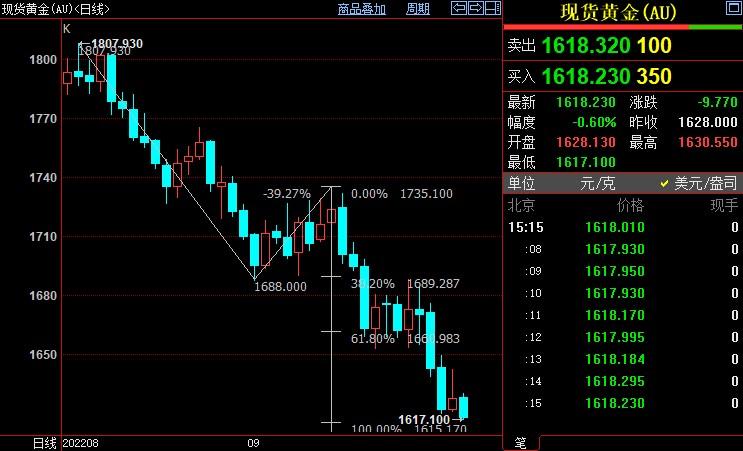 现货黄金下看1600美元关口
