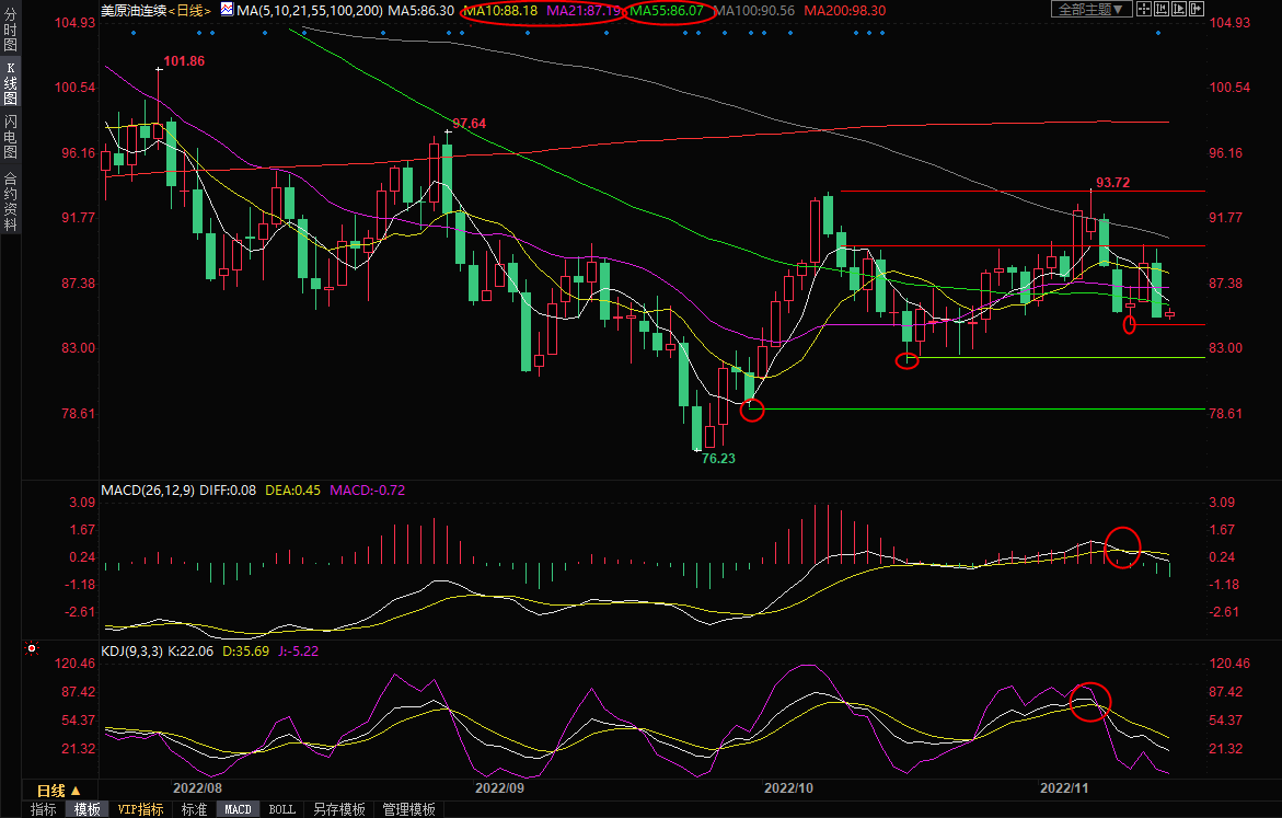 上方初步阻力在55日均线86.07附近,21日均线阻力在87.18附近,10日均线阻力在88.15附近,如果收复该位置,则削弱短线看空信号。
