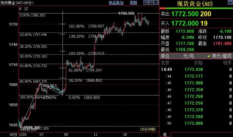 现货黄金上看1795美元