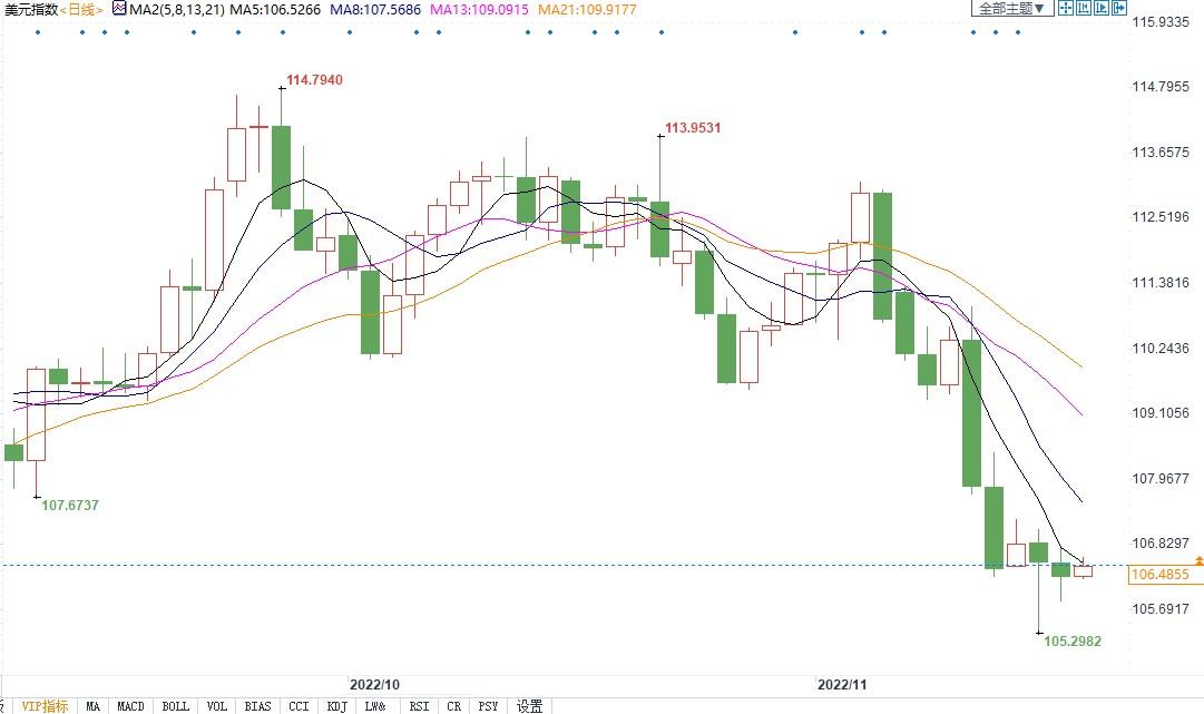 北京时间11月17日13:14,美元指数报106.48