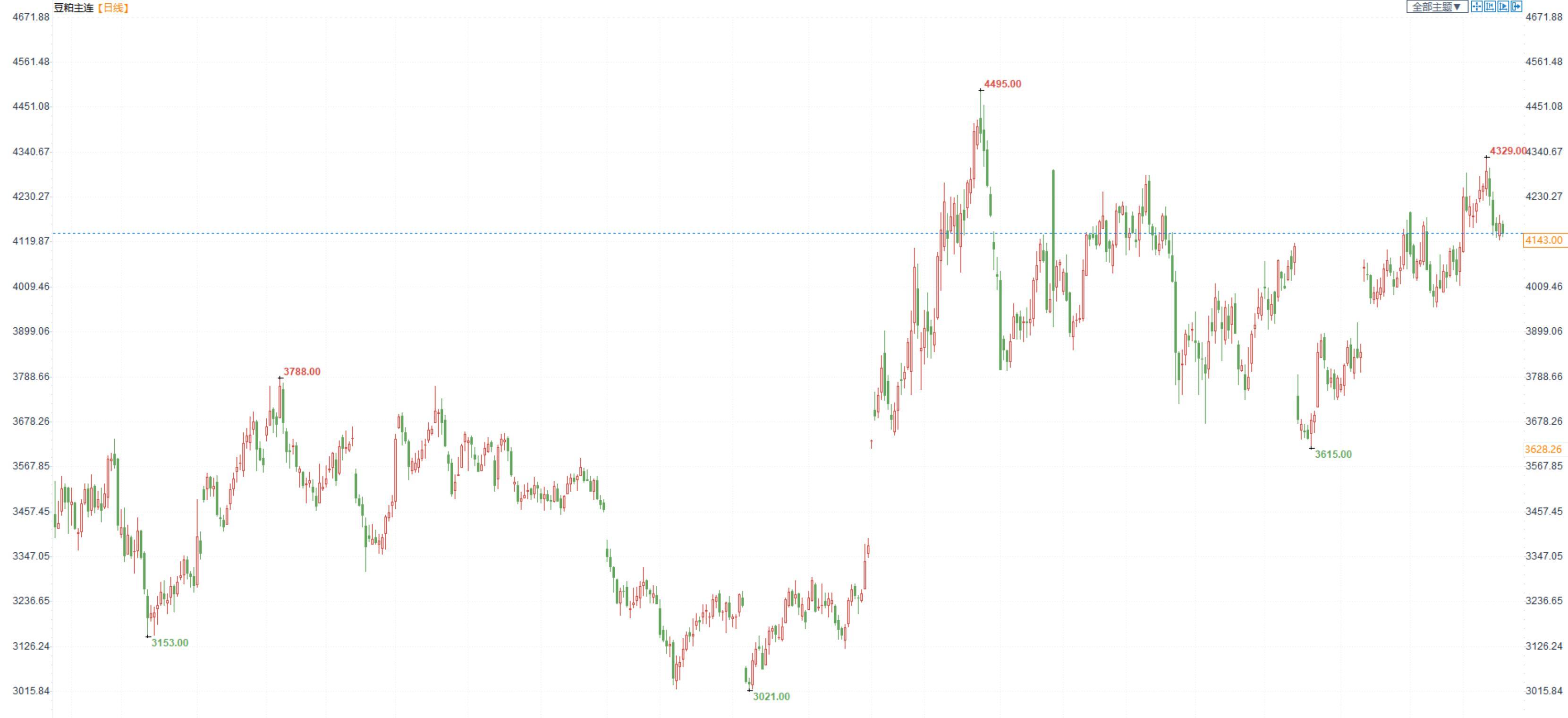 豆粕2301合约日内跌0.26%,收盘价4143元/吨,现货张家港43%蛋白豆粕5240元/吨。