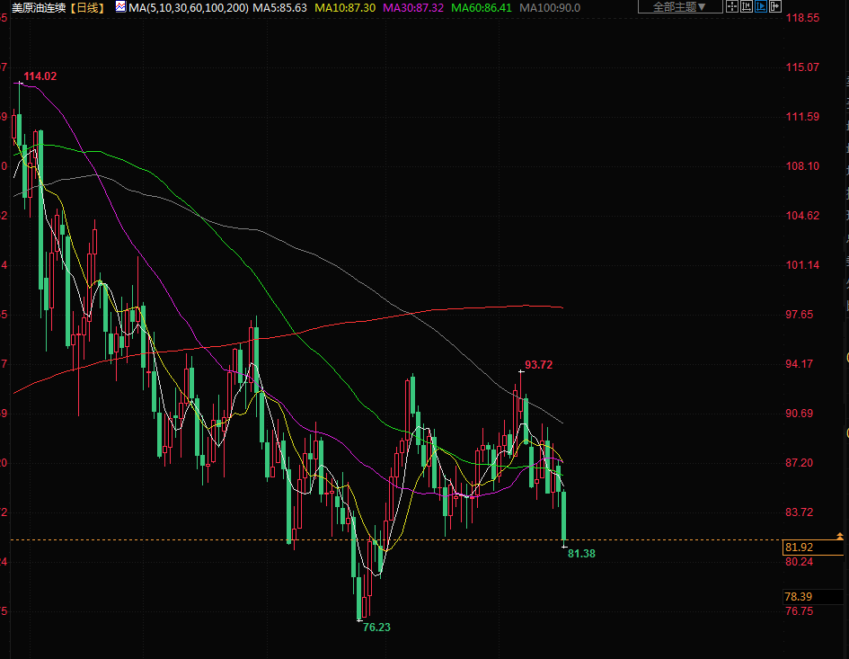 商品收盘情况:布伦特原油期货下跌3.3%,收报每桶89.78美元;美国原油期货下滑4.6%,报收每桶81.64美元。美国期金结算价下跌0.7%,报1763美元。