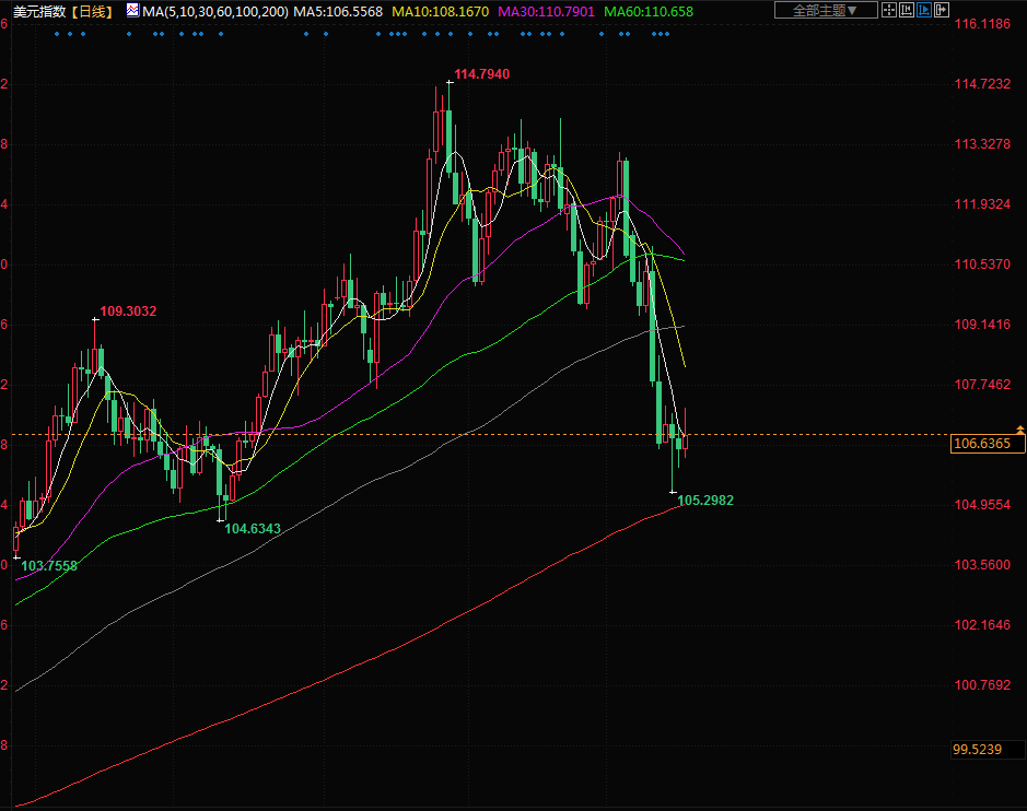 上周美国初请失业金人数下降,尽管美联储激进加息以让经济中的需求降温,但劳动力市场仍吃紧,这体现出美国经济具有一定的韧性。虽然美联储理事沃勒周三表示,他对未来降低加息幅度感到“更加放心”,但圣路易斯联储主席布拉德表示,美联储需要继续加息,可能至少要再加100个基点。现货白银下跌2.5%,至每盎司20.93美元,铂金下跌2.5%,至980.61美元,钯金下跌3.2%,至2006.07美元。